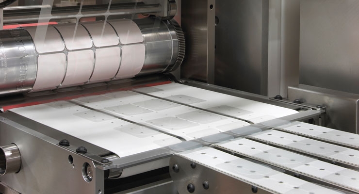 將膠帶卷安裝到模切機(jī)的放卷裝置上,通過導(dǎo)輥調(diào)整張力,確保膠帶平整輸送。